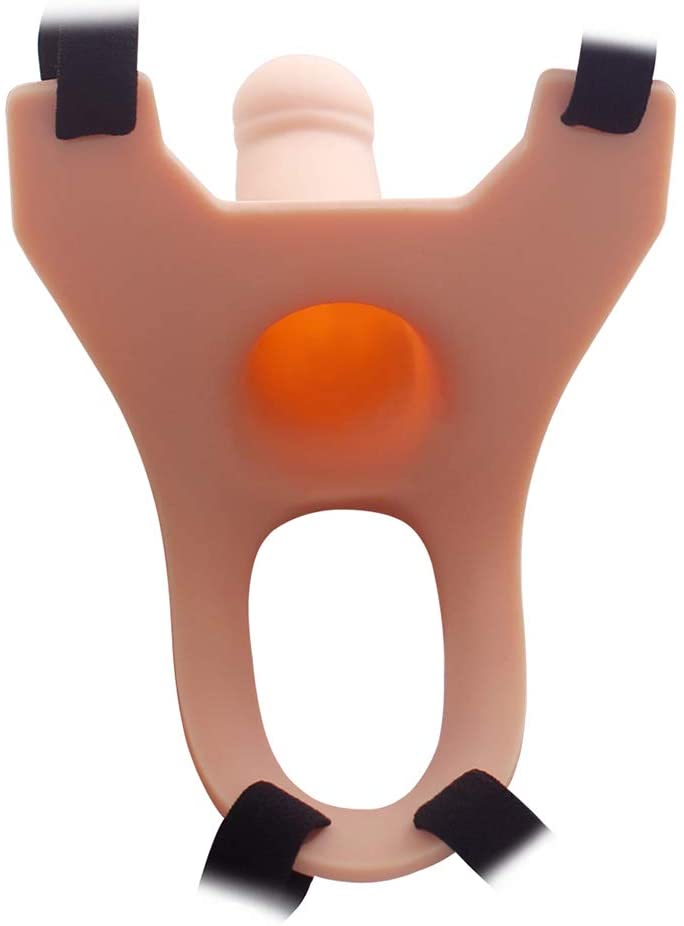 - Insert the penis sleeve into the harness and secure it in place.