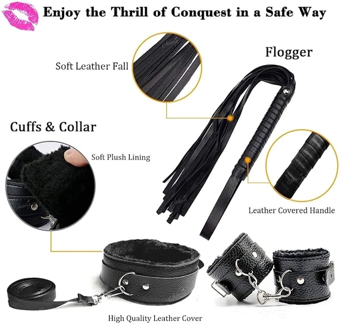 Black BDSM Restraints Sex Toys 15 Pcs Bondage Kit
