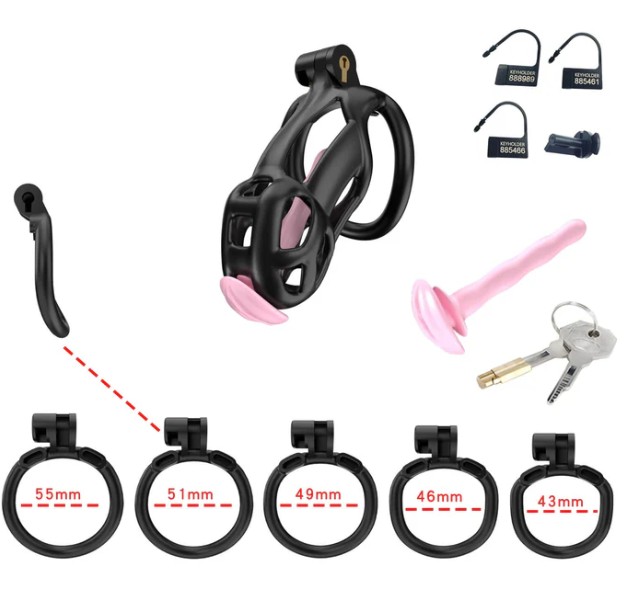 Black Cobra Small 3D Printed Bondage Chastity Kit With Urethral with 5 Sizes Breathable Rings