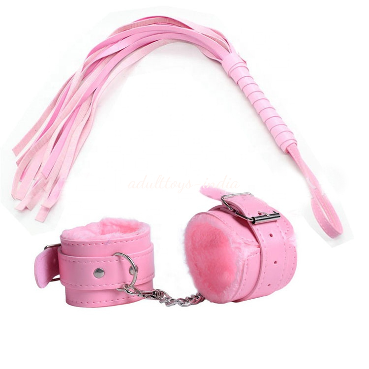 Girls Sex Games Leather Whip Flogger Plush Sex Handcuffs Bondage-Pink