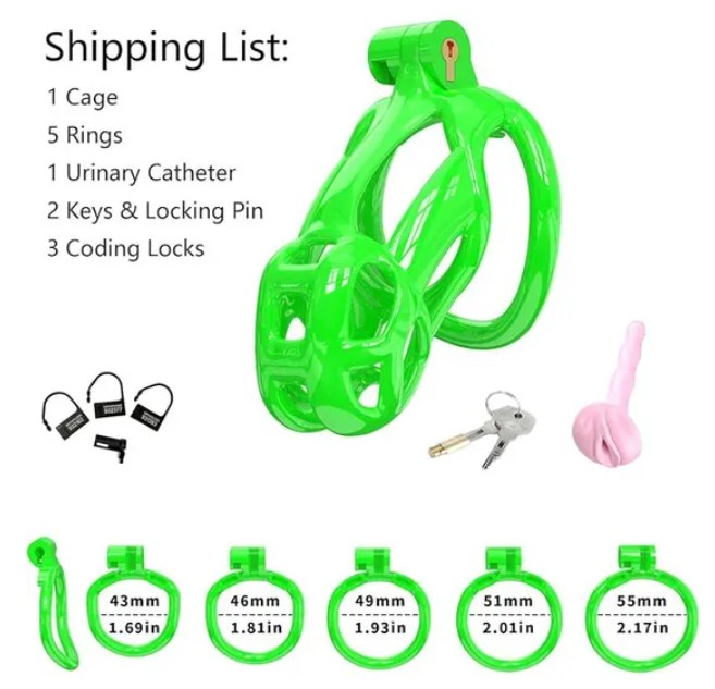 Green Cobra Small 3D Printed Chastity Kit With Urethral with 5 Sizes Breathable Rings