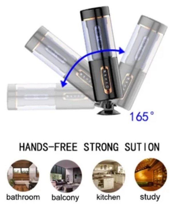 This masturbator cup is designed with a firmly suction base which can grab to any smooth hard surface such as bed board, floor and etc. Let you enjoy it anywhere without using your hands. 165 degree adjustable angle make you possible to choose one angle you like and provide you mind blowing sensation.