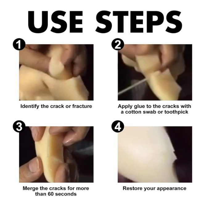 Using our repair glue is easy and straightforward. Here’s a step-by-step guide: